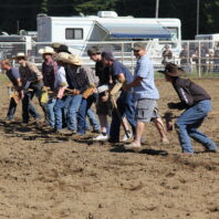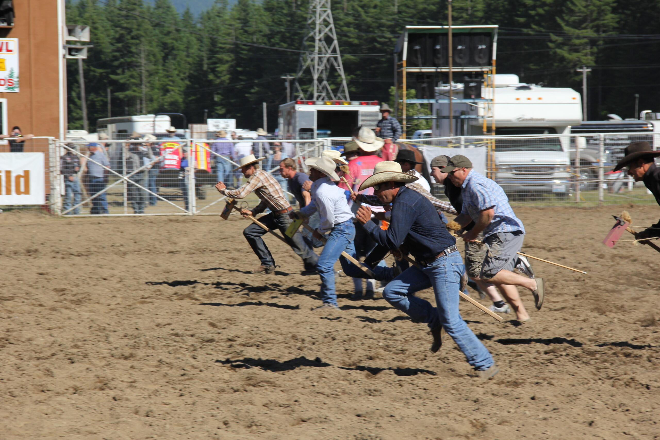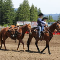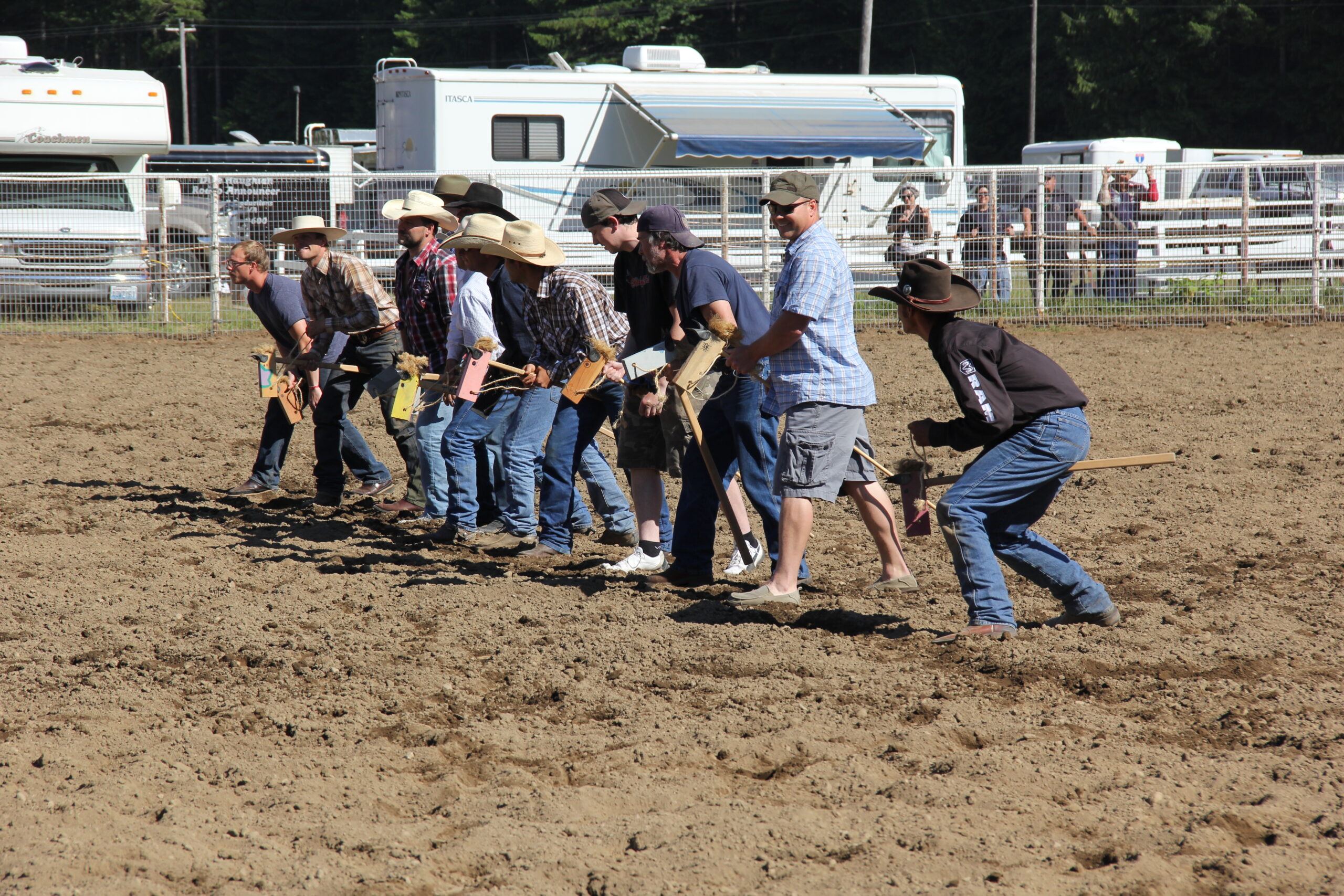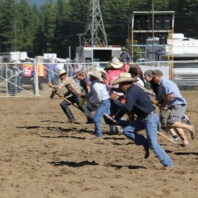 Preparing to begin the Adult Stick-Horse Race at the Darrington Rodeo – Credit: Tesia Lingenfelter