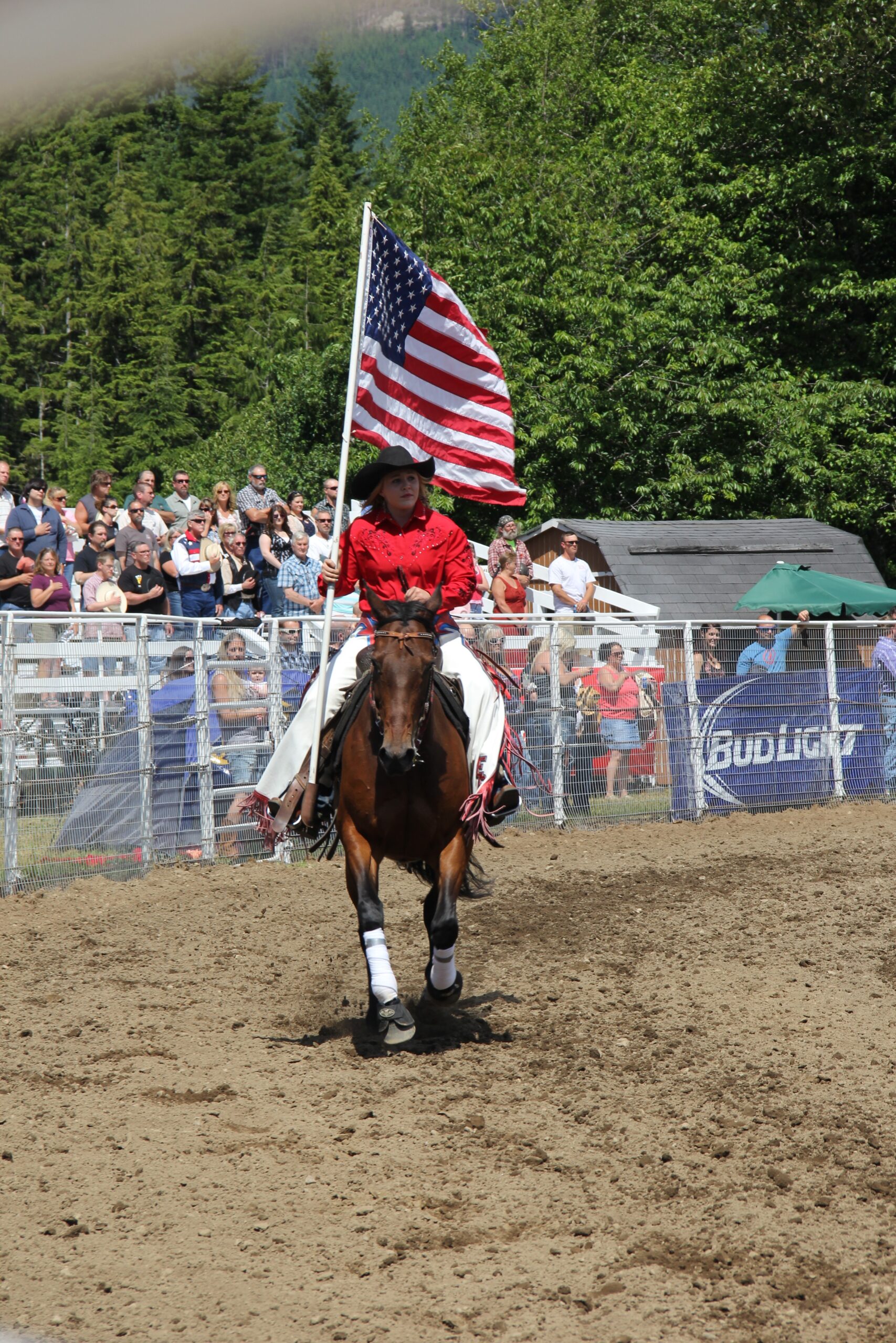 The American flag being paraded during the playing of the National Anthem at the Darrington Rodeo – Credit: Tesia Lingenfelter