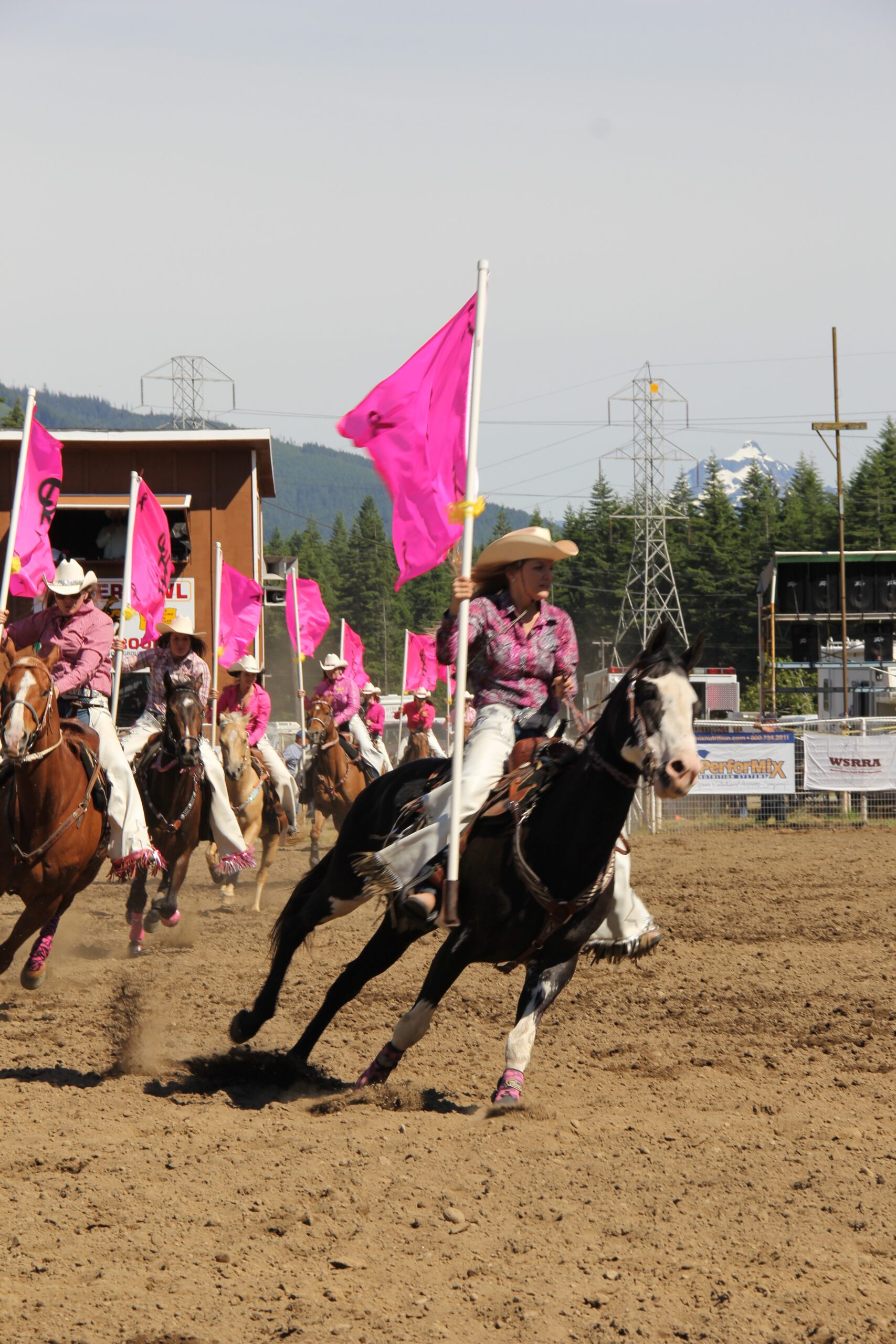 Darrington Rodeo Girls performing a drill during the opening of the rodeo – Credit: Tesia Lingenfelter
