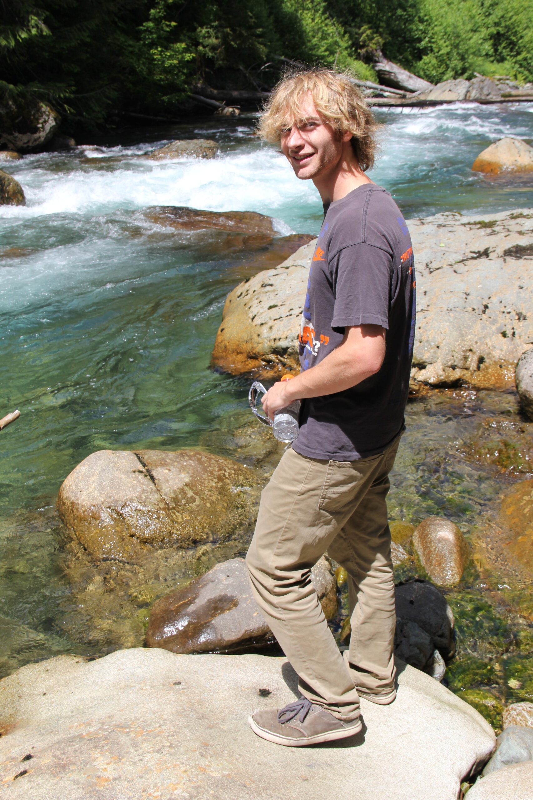 Intern Carson Davis viewing the Sauk River along Mountain Loop Highway – Credit: Tesia Lingenfelter