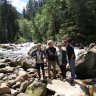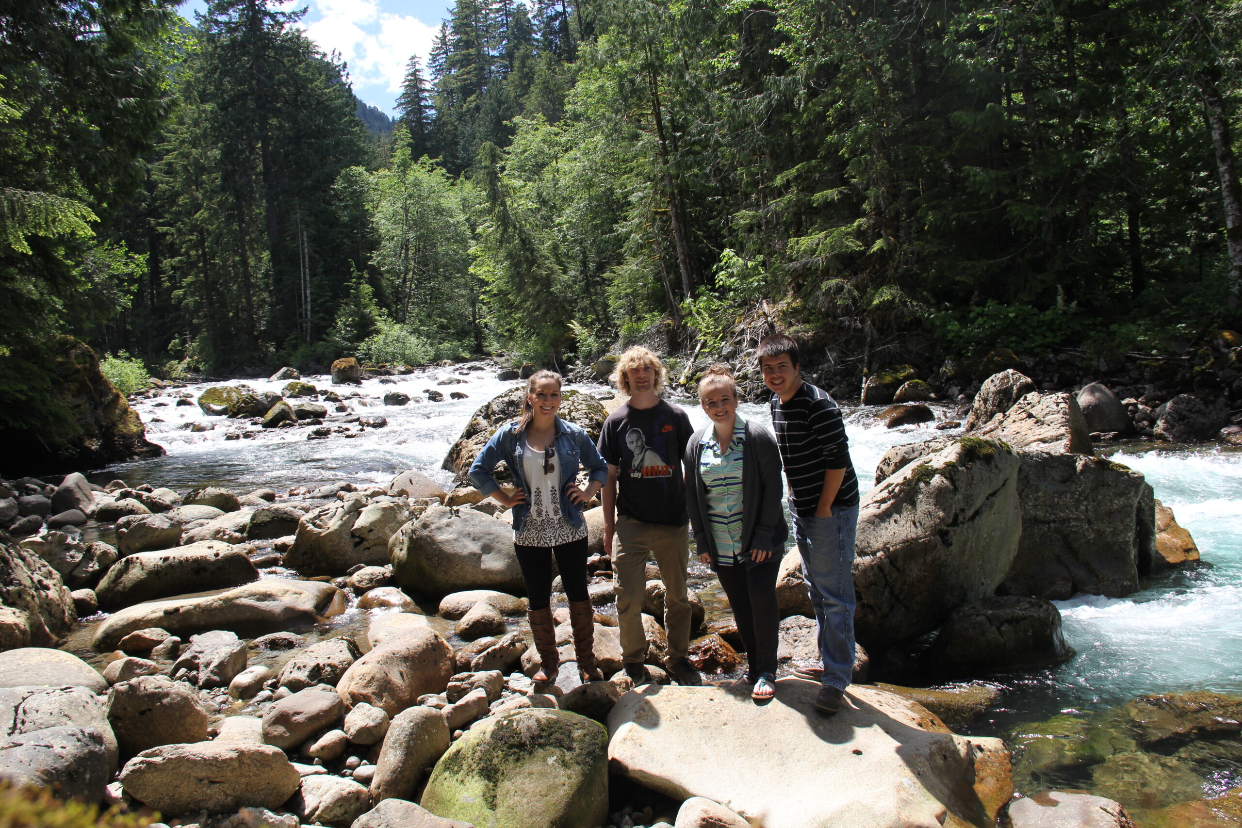 Interns Liz Norris, Carson Davis, Tesia Lingenfelter, and Colby Cavanaugh during their trip to learn about Mountain Loop Highway – Credit: Carson Davis