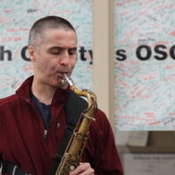 A saxophonist playing at the Darrington Street Fest – Credit: Tesia Lingenfelter