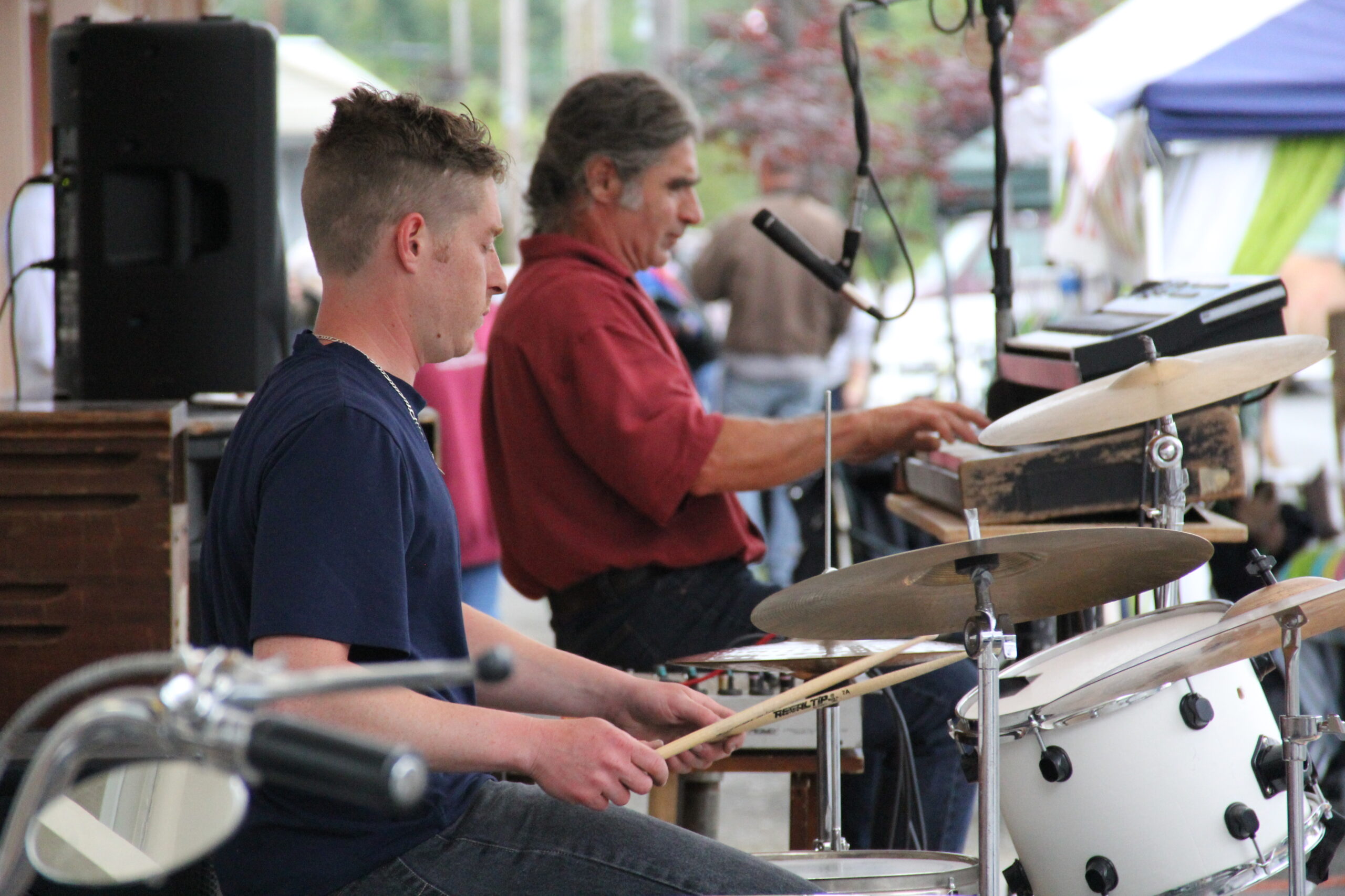 A drummer and a keyboardist performing at the Darrington Street Fest – Credit: Tesia Lingenfelter