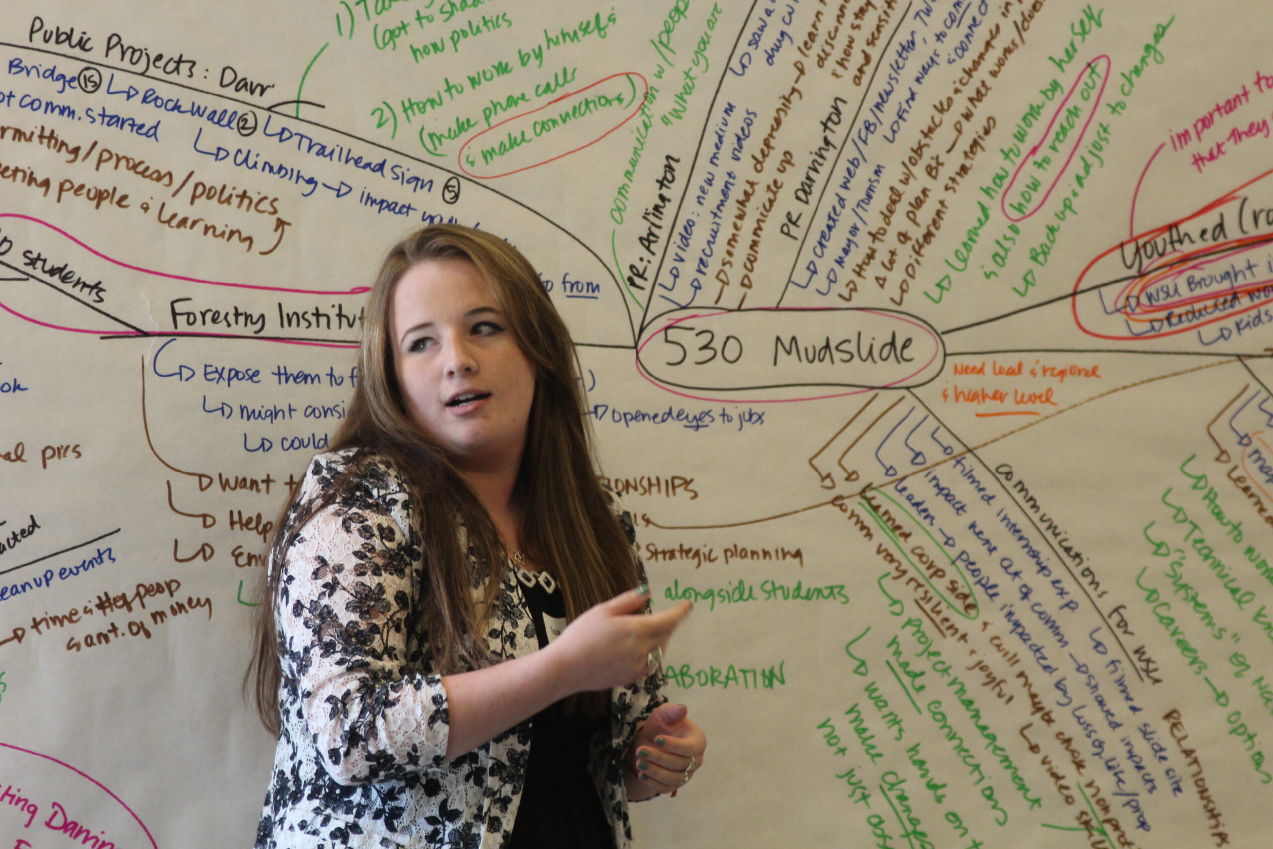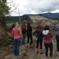Intern Liz Norris on a small group trip through Mountain Loop Highway – Credit: Tesia Lingenfelter