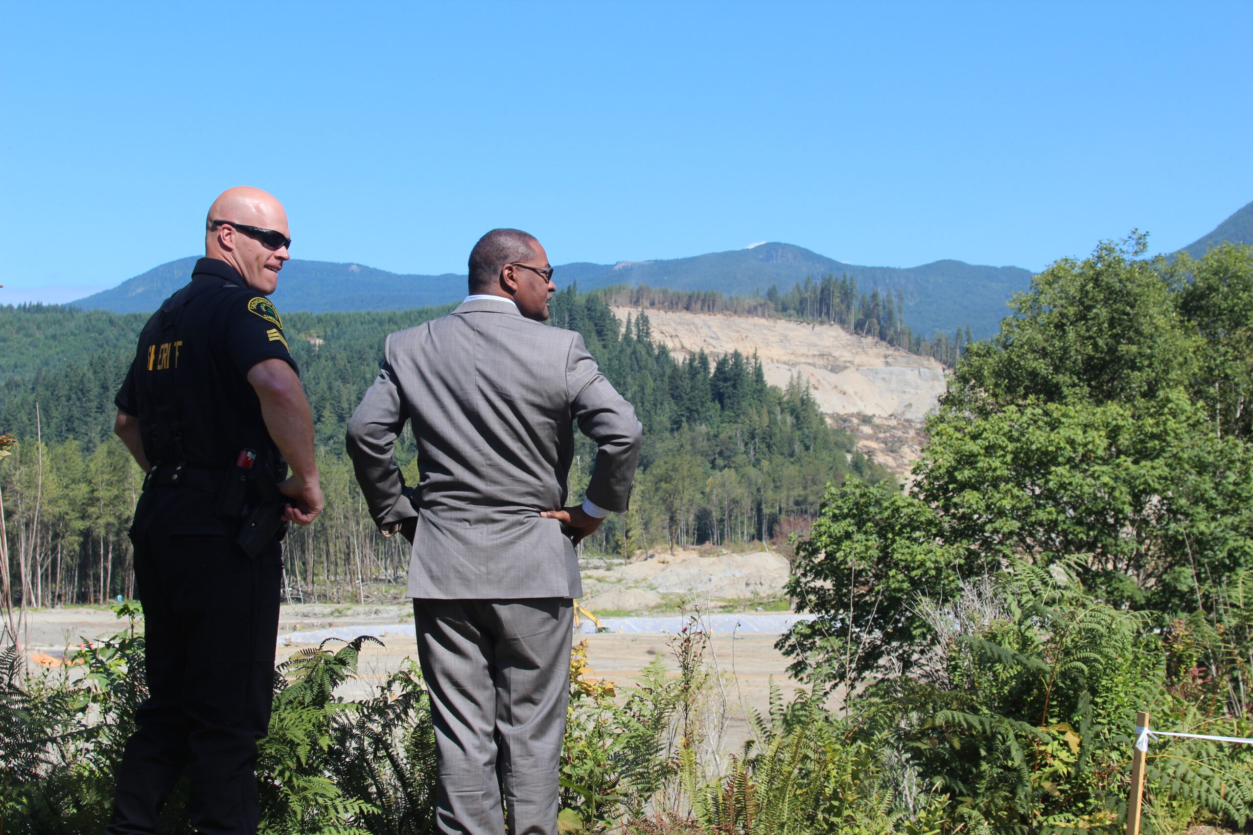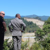 WSU President Elson S. Floyd views mudslide with Deputy A. Kahler